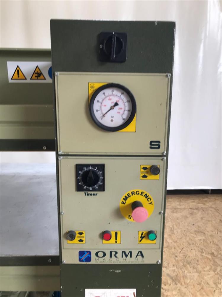 La pressa a piani freddi Orma, modello S/6 del 1999 (C.E.), è ideale per la lavorazione del legno.