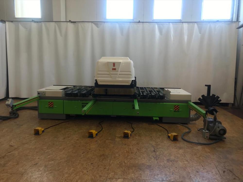 Le 8 barre, dotate di ventose, per la tenuta del pezzo sono regolabili manualmente, 2 elettro mandrini e 1 lama direzionabile 0/90 gradi completano il lavoro di sagomatura del pannello.