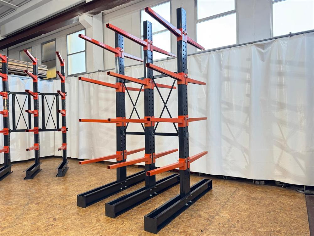 cantilever per falegnameria sono la soluzione ideale per lo stoccaggio ordinato e sicuro di tavole, pannelli, travi e listoni in legno. Progettati per ambienti professionali, questi supporti verticali sono costruiti per resistere a carichi elevati e per garantire