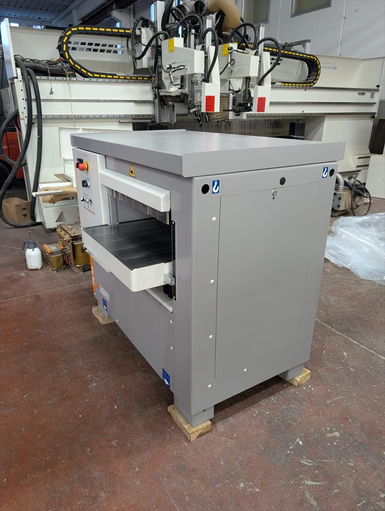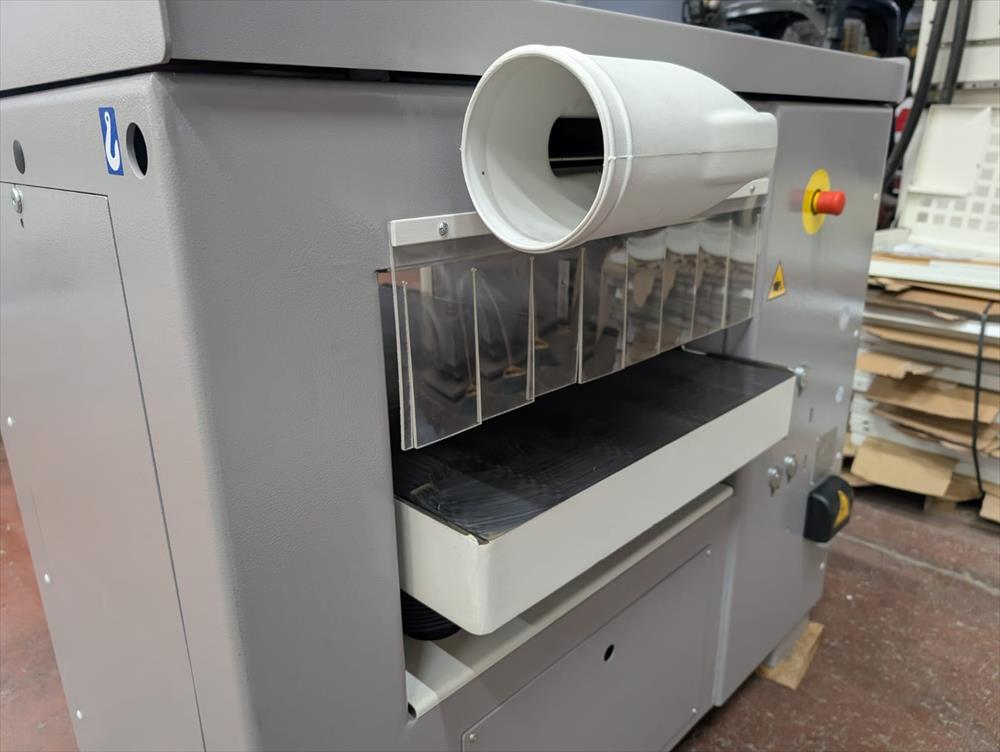 Il controllo dell'altezza è facilitato da un lettore numerico ad alta precisione, mentre la protezione magnetotermica, l'interruttore generale lucchettabile e la cappa d'aspirazione rendono la macchina sicura e pronta per l’ambiente produttivo moderno. Le velocità di avanzamento regolabili (5-8-12-18 m/min) offrono versatilità per ogni esigenza di lavorazione.