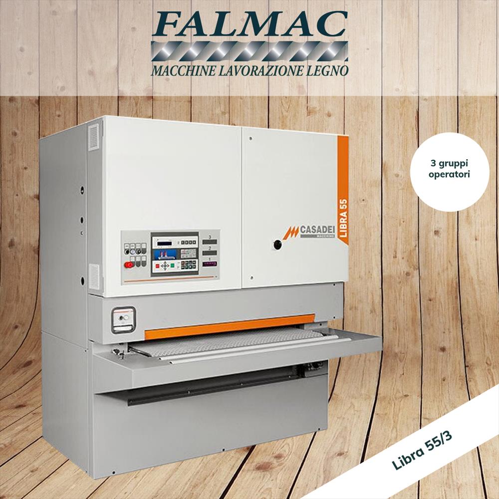 La Libra 55/3 e una calibratrice-levigatrice automatica con tre gruppi operatori indipendenti, progettata per garantire elevate prestazioni di lavorazione su pannelli in legno massello, impiallacciato, MDF o verniciato. Grazie alla sua struttura solida, alla facilita di configurazione e all'elevata potenza installata, questa macchina rappresenta una soluzione ideale per falegnamerie professionali e aziende industriali che richiedono produttivita, precisione e flessibilita.