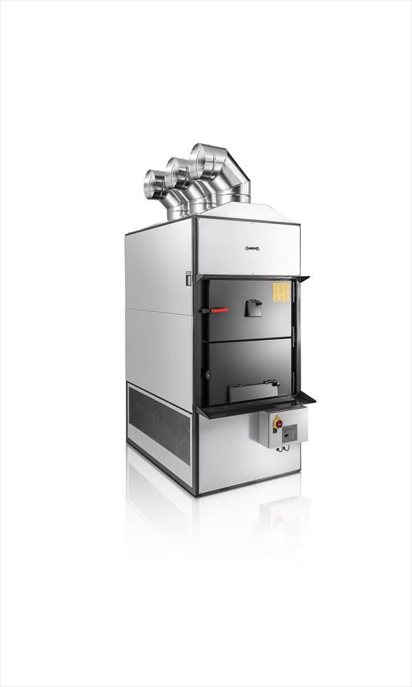Ventilatori centrifughi a doppia aspirazione per mandata aria calda funzionanti anche a basso regime di giri e disposti su speciali sospensioni elastiche, azionati da uno o più motori elettrici