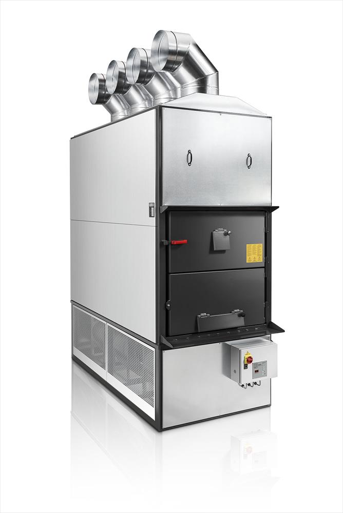Ventilatori centrifughi a doppia aspirazione per mandata aria calda funzionanti anche a basso regime di giri e disposti su speciali sospensioni elastiche, azionati da uno o più motori elettrici